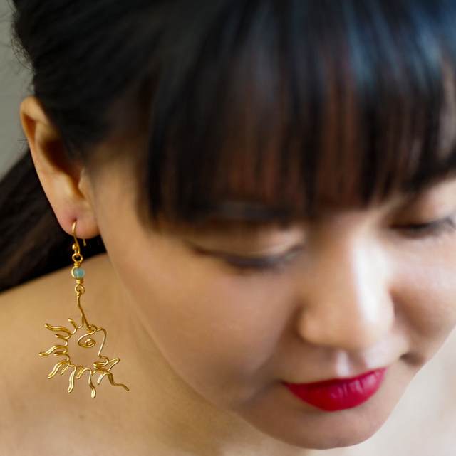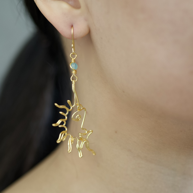 Boucles d’oreilles en bronze, dorure à l’or fin 24 carats.